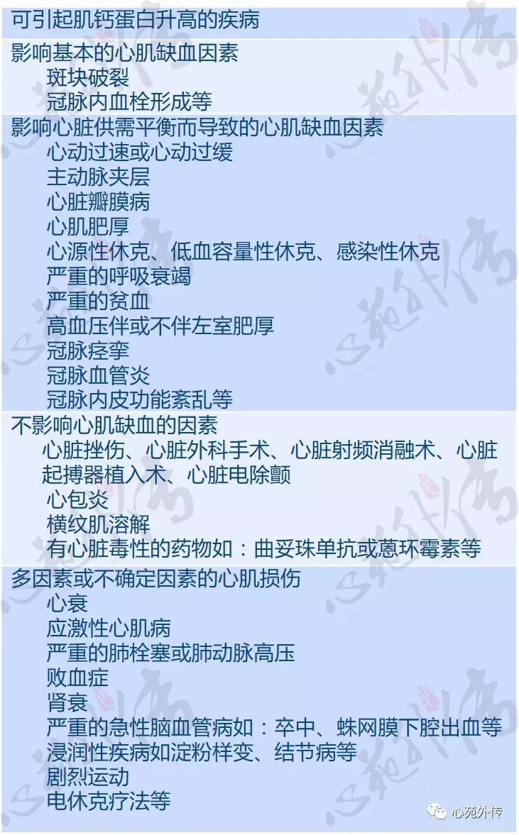 与肌钙蛋白升高相关的疾病也非常多,应注意鉴别