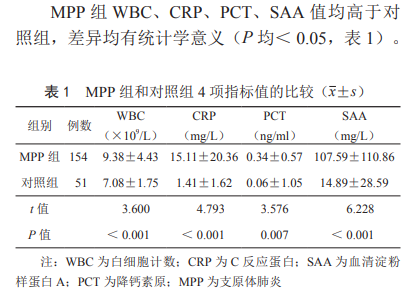 在肺炎支原体感染后,SAA一般会升高。在2020年《儿童肺炎支原体肺炎感染指标的诊断价值》中提出: